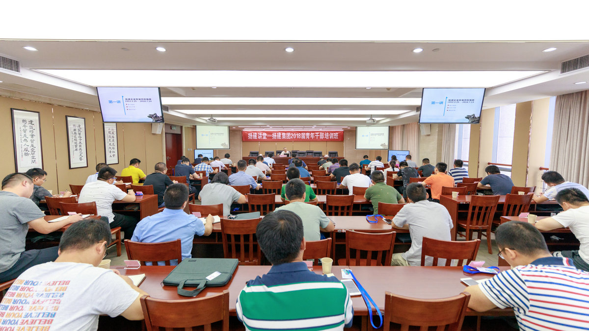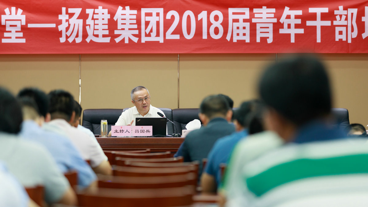揚建網(wǎng)訊 為進一步培養(yǎng)青年干部對企業(yè)文化認同感、歸屬感,強化個人和團體管理協(xié)作能力,豐富實踐技能、專業(yè)知識等文化軟實力。7月14日上午,集團 “揚建講堂——揚建集團2018屆青年干部培訓(xùn)班” 在運河城市廣場B座14樓會議室開班。集團董事呂國兵主持開班儀式,集團董事長曹德榮、黨委書記康往東、總經(jīng)理鄒厚存,黨委副書記張振新、陳滸出席并講話,共52名青年干部參加了學(xué)習(xí)。