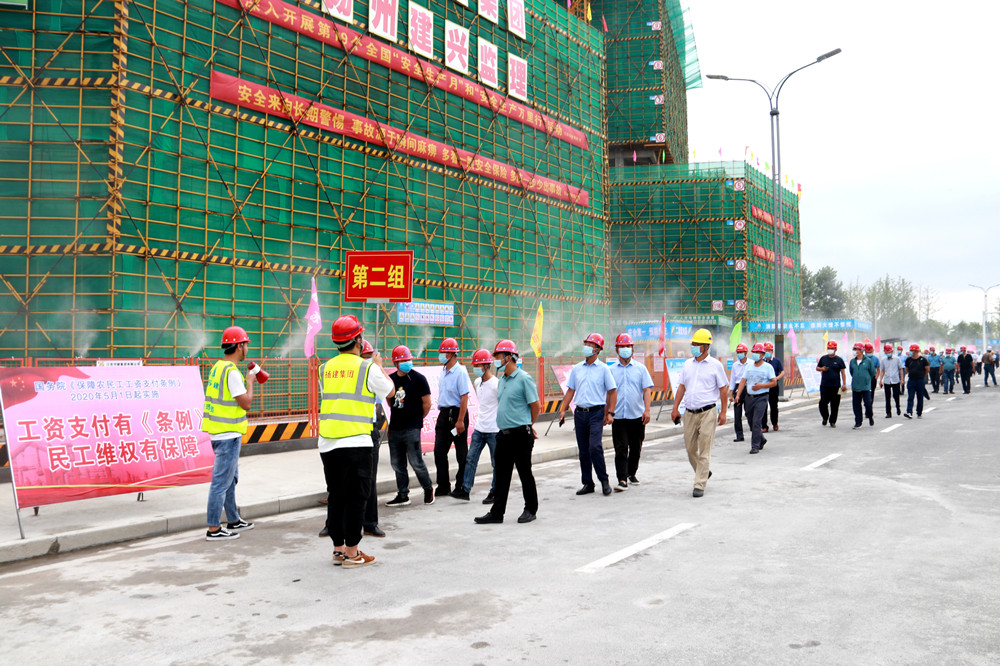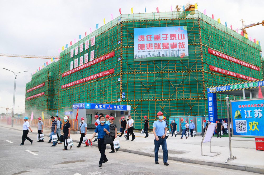 揚(yáng)建網(wǎng)訊 6月29日下午,市住房和城鄉(xiāng)建設(shè)局在集團(tuán)與邗建集團(tuán)共同承建的揚(yáng)州軟件園項(xiàng)目舉行2020年揚(yáng)州市建筑施工安全生產(chǎn)標(biāo)準(zhǔn)化現(xiàn)場觀摩會。省建筑安全監(jiān)督總站站長王佳強(qiáng)、市住建局局長陶伯龍、副局長薛炳寬、市建工控股董事長王宏、我集團(tuán)總經(jīng)理鄒厚存、副總經(jīng)理丁傳武及來自全市各縣區(qū)建設(shè)安全監(jiān)管部門,建筑企業(yè)共300余位代表等出席活動。