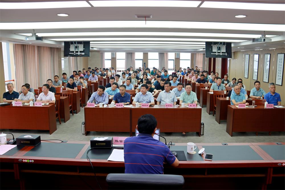 揚建網(wǎng)訊 7月1日,集團黨委在文昌辦公區(qū)14樓會議室召開全面從嚴(yán)治黨專題教育大會。會議由集團黨委副書記張振新同志主持,集團在揚黨委委員、在揚各單位黨政負(fù)責(zé)人、總部全體黨員、在揚單位黨員代表百余人參加了會議。