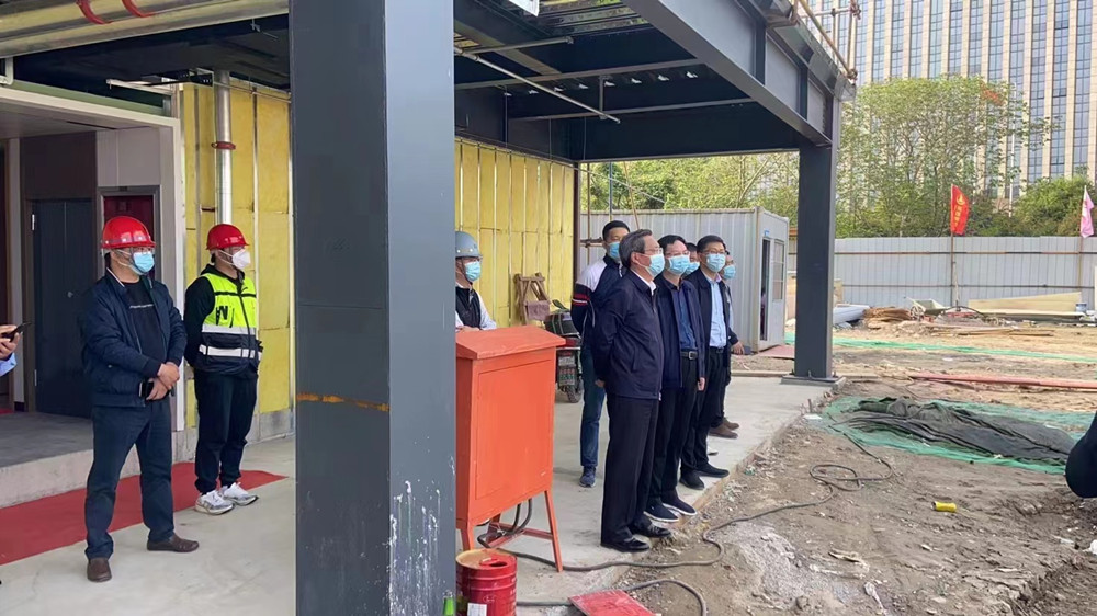 揚(yáng)建網(wǎng)訊 5月1日下午,揚(yáng)州市市委副書記韓驊視察廣陵區(qū)健康驛站項(xiàng)目。該項(xiàng)目由我集團(tuán)總包承建,項(xiàng)目管理一公司實(shí)施。廣陵區(qū)區(qū)長(zhǎng)郎俊、副區(qū)長(zhǎng)王兵、廣陵文旅集團(tuán)總經(jīng)理尹景益、項(xiàng)目管理一公司經(jīng)理薛峰陪同視察。