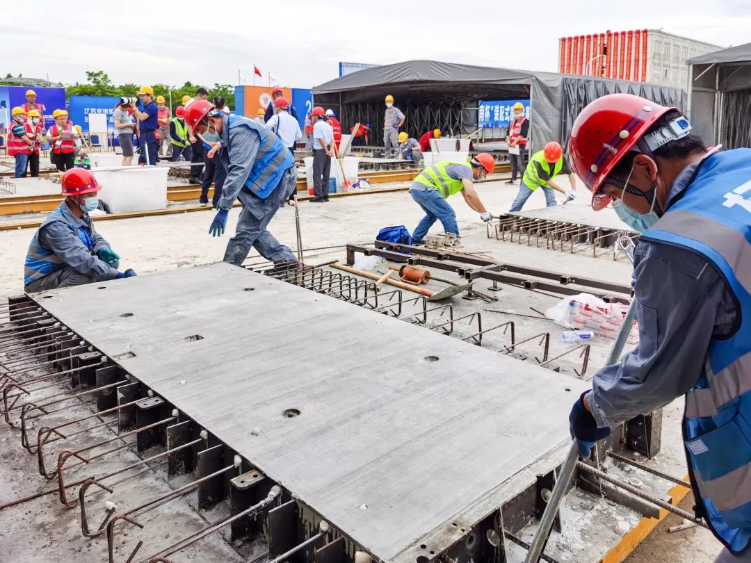 本屆裝配式競賽是由江蘇省住建廳、人社廳、總工會(huì)等部門舉辦的一級一類競賽,比賽規(guī)格高、參賽隊(duì)伍多、技術(shù)要求高,競賽規(guī)模創(chuàng)歷屆之最,共有來自全省的13個(gè)代表隊(duì)、92家參賽單位、260余名競賽選手參加。比賽共設(shè)有裝配式構(gòu)件制作、吊裝及灌漿三個(gè)項(xiàng)目,按理論考試和技能操作兩個(gè)部分進(jìn)行。華晟公司在比賽中展示了專業(yè)知識和扎實(shí)的實(shí)際操作能力,充分體現(xiàn)了敬業(yè)、精益、專注的“工匠精神”。
