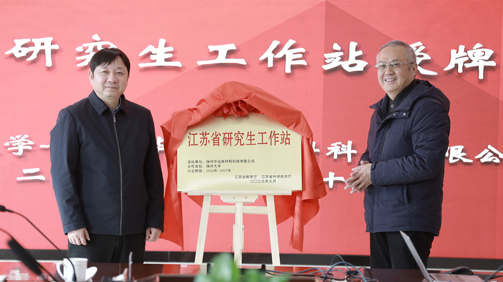 揚(yáng)建網(wǎng)訊 為促進(jìn)產(chǎn)教融合,推動(dòng)科技創(chuàng)新和人才培養(yǎng),揚(yáng)州大學(xué)與揚(yáng)建集團(tuán)華運(yùn)新材料科技有限公司合作建立了江蘇省研究生工作站。12月13日上午,揚(yáng)大與華運(yùn)公司共同舉行了工作站的揭牌儀式,揚(yáng)州大學(xué)研究生院常務(wù)副院長(zhǎng)薛懷國(guó)、我集團(tuán)黨委副書記呂國(guó)兵為“江蘇省研究生工作站”揭牌,揚(yáng)州大學(xué)建工學(xué)院院長(zhǎng)康愛(ài)紅、研究生院副院長(zhǎng)王莉、揚(yáng)州大學(xué)楊鼎宜教授團(tuán)隊(duì)及骨干教師、建祥公司經(jīng)理賈向鋒和相關(guān)經(jīng)理室成員參加了揭牌儀式。