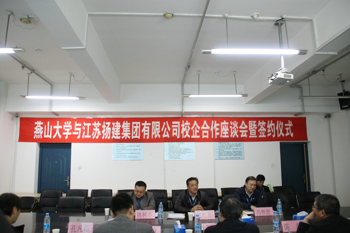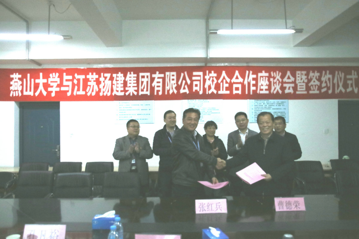座談過程中,雙方首先觀看了各自的宣傳片,增進了相互了解。隨后,燕大張?zhí)庨L介紹該校簡要校史、發(fā)展概況和畢業(yè)生就業(yè)情況;我集團曹董事長介紹了揚建的發(fā)展概況和人才需求情況;許世明董事就近年來揚建集團引進、培養(yǎng)和使用的燕山大學(xué)優(yōu)秀畢業(yè)生情況作了介紹。最后,他們代表校企雙方正式簽署了《燕山大學(xué)-江蘇揚建集團有限公司校企合作協(xié)議》。根據(jù)該協(xié)議,我集團將在燕大設(shè)立優(yōu)秀生源基地,燕大將在我集團設(shè)立畢業(yè)生就業(yè)基地;雙方定期聯(lián)系,建立人才供需信息互動機制;不定期互訪,雙方在人才培養(yǎng)與就業(yè)、在職骨干深造、教學(xué)改革、專業(yè)設(shè)置、產(chǎn)學(xué)研合作、互派導(dǎo)師或顧問等方面更好互動、深入合作。