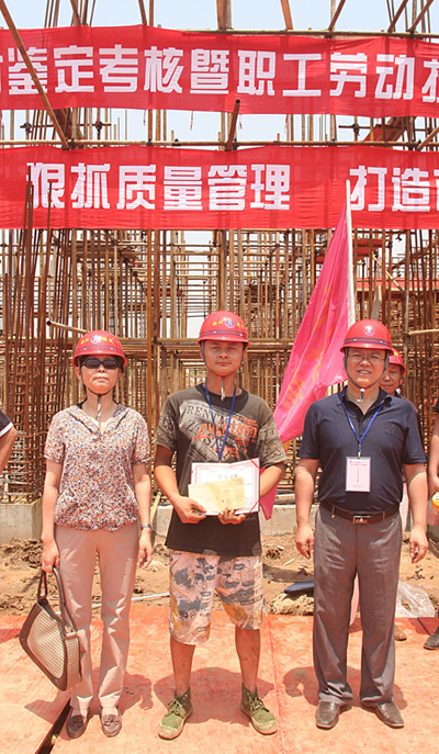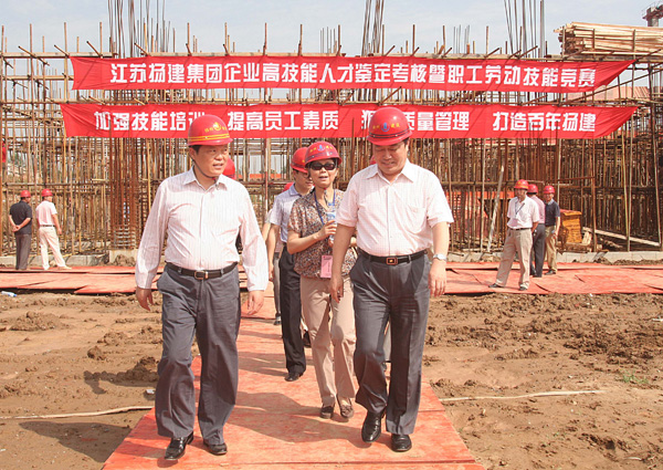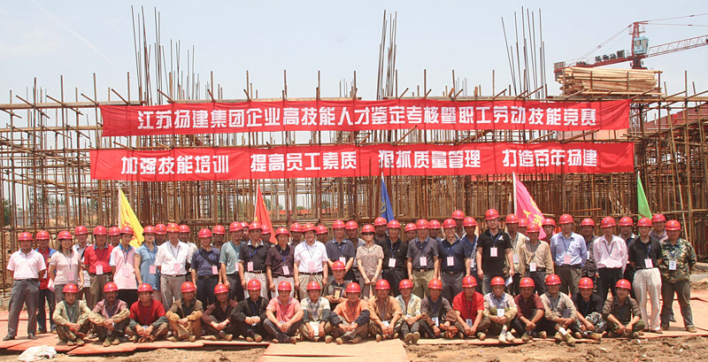 2009年6月22日至23日,集團(tuán)在揚(yáng)州市體育運(yùn)動(dòng)學(xué)校遷建工程施工現(xiàn)場(chǎng)舉辦了“企業(yè)高技能人才鑒定考核暨職工勞動(dòng)技能競(jìng)賽”,揚(yáng)州市勞動(dòng)和社會(huì)保障局顏軍副局長(zhǎng)等領(lǐng)導(dǎo)和曹德榮、楊志娟、鄒厚存、張振新等集團(tuán)領(lǐng)導(dǎo)蒞臨現(xiàn)場(chǎng)指導(dǎo)。經(jīng)過40名選手的精心準(zhǔn)備和認(rèn)真努力,整個(gè)鑒定考核工作取得了圓滿成功。
