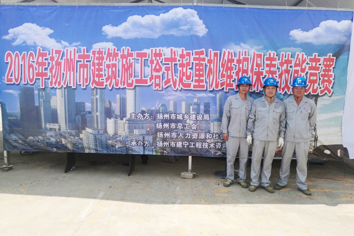 2016年7月31日,揚(yáng)州市城鄉(xiāng)建設(shè)局、市總工會(huì)、市人力資源和社會(huì)保障局聯(lián)合主辦的建筑施工塔式起重機(jī)維保技能競(jìng)賽在我集團(tuán)設(shè)備租賃分公司院內(nèi)舉辦,全市共9支代表隊(duì)參加競(jìng)賽。我集團(tuán)占德華、劉志全、張宏生組成的代表隊(duì)獲理論考試與技能操作競(jìng)賽第一名,同時(shí)獲得參加省級(jí)競(jìng)賽的資格。