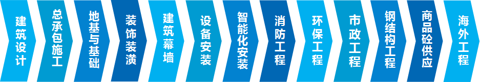 專業(yè)從事工業(yè)與民用建筑,集建筑設計、總承包施工、地基與基礎、裝飾裝潢、建筑幕墻、設備安裝、智能化安裝、消防工程、環(huán)保工程、市政工程、鋼結(jié)構(gòu)工程、商品砼供應及海外工程等業(yè)務于一體,擁有建筑工程施工總承包特級資質(zhì)和十多項一級資質(zhì)、多項甲級資質(zhì),具備承建城市綜合建設、大型公用設施、超高層、大型工業(yè)廠房等工程的總承包能力。